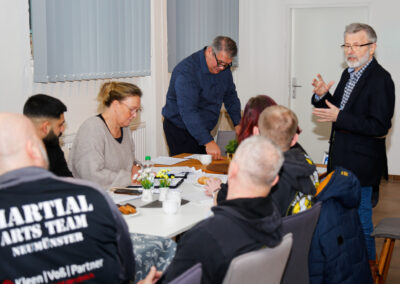 Ein besonderer Moment zu Beginn war die nachträgliche Gratulation an Ehrenpräsident Geert J. Lemmens zu seinem 81. Geburtstag. Zudem wurde Marcel Schönbom mit seinem Verein Lübecker Kampfsport e.V. im Landesverband willkommen geheißen.