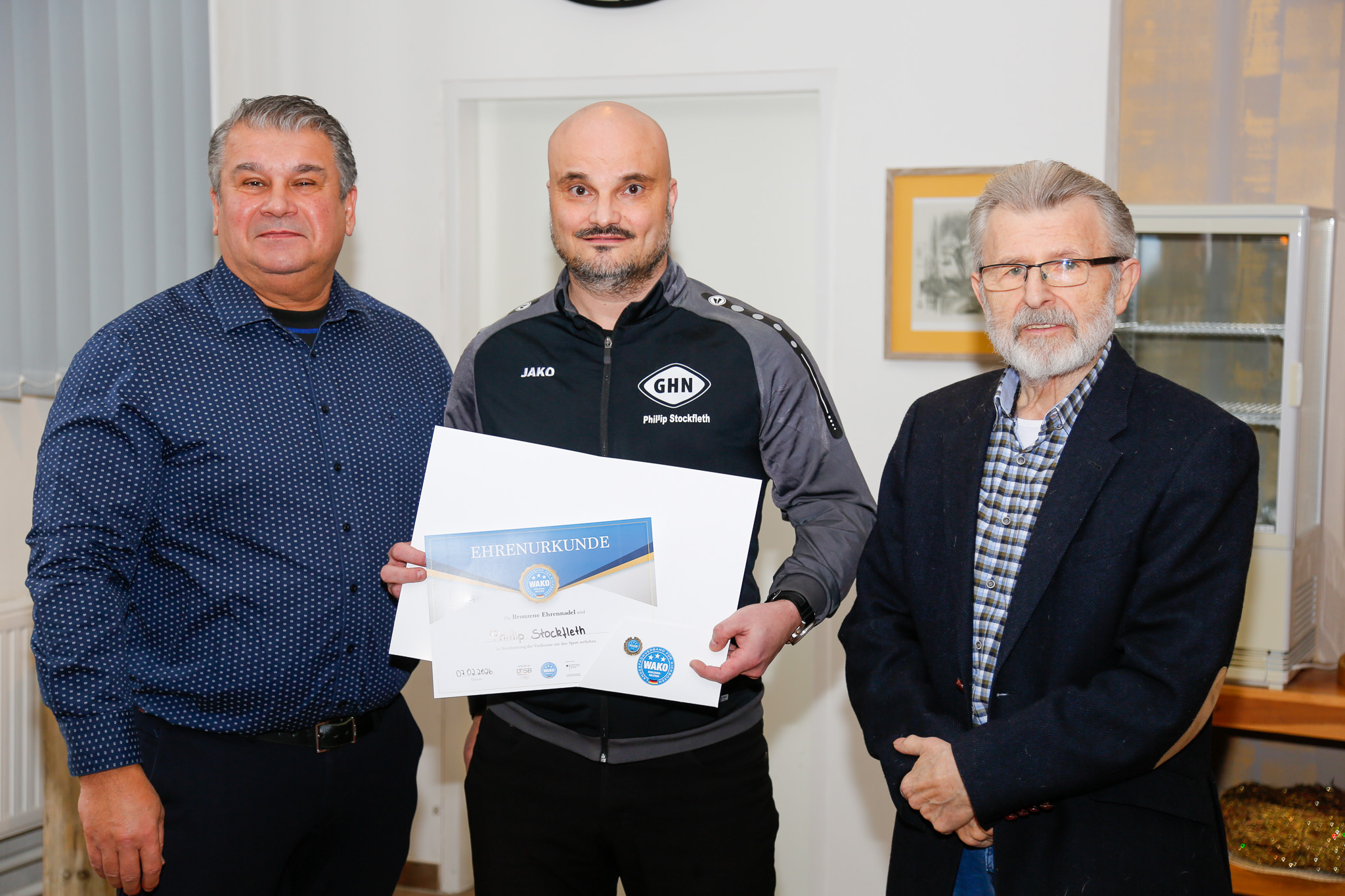 Im Rahmen des Verbandstages wurden engagierte Mitglieder für ihren langjährigen Einsatz geehrt. Phillip Stockfleth erhielt die Bronzene Ehrennadel des Verbandes. Als Spartenleiter Kickboxen beim SC Gut Heil Neumünster engagiert er sich seit vielen Jahren erfolgreich in der Nachwuchs- und Erwachsenenarbeit. Besonders hervorgehoben wurden sein sportlicher Einsatz, seine Fairness sowie die gelungene Integration von Sportlerinnen und Sportlern unterschiedlicher Nationalitäten. Die Kampfsportabteilung wurde hierfür mit dem Innovationspreis der Stadt Neumünster ausgezeichnet.